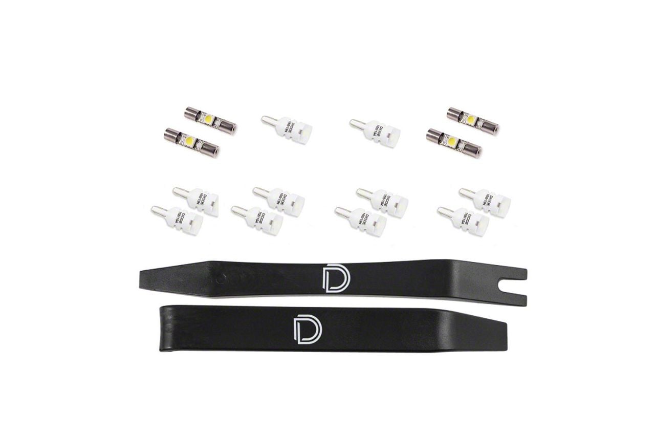 Enhanced Interior Ambiance. The Diode Dynamics Stage 1 LED Interior Lighting Kit is designed to elevate the interior lighting of your Jeep Grand Cherokee WK2. This kit replaces standard bulbs with cool white LEDs, providing a modern and brilliant light that enhances visibility and the overall aesthetic of the vehicle's cabin.