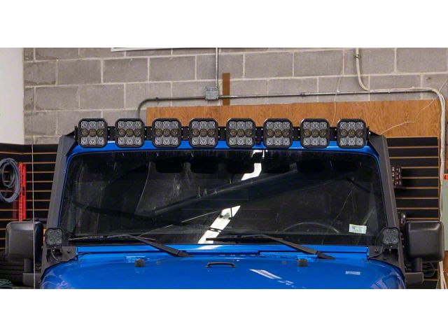 Custom Look. The Diode Dynamics SS5 Sport CrossLink Windshield Light Bar Kit; White Combo delivers big on intense lighting and style. Engineered for combination driving and flood optics, this light bar kit adds big road visibility for oncoming drivers which ultimately enhances your road safety. Manufactured to mount above your Jeep’s factory windshield, you’ll love the look and style this light bar kit provides.