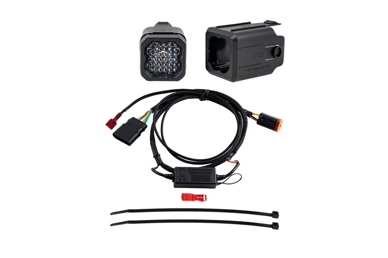 Overview. Add significantly more light output when backing up at night with our Stage Series HitchMount Reverse Light Kit! This kit allows you to mount one SSC1 or C1R LED pod in your 2-inch or 2.5-inch trailer hitch receiver, adding a high-power reverse light, additional running light, and an optional 4th brake light with the C1R option. With the included wiring harness, this kit connects to your vehicle's 4-pin trailer connector for simple, everyday operation.
