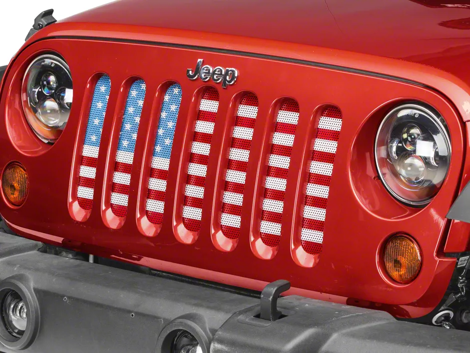 Patriotic grille Styling. This unique grille insert provides a patriotic eye-catcher for your 2007-2018 Wrangler JK's front end. Proudly dawning the American flag, you can show your Jeep's heritage on the road and the trails. Each grille insert is veteran-made and painted by hand, ensuring a high level of detail and quality in its fit and finish.