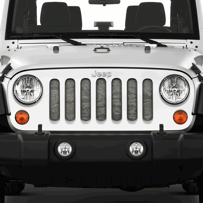 Give your Jeep a rugged and tough look with this Tiger Stripe Grille Insert for Jeep Wrangler JK. Constructed from high quality, rust resistant aluminum, this grille insert is perforated to allow proper air flow to your engine. Combine that with the stylish design, and you've got a grille that's tough, functional, and gives your Jeep a unique look that will set you apart from the crowd!