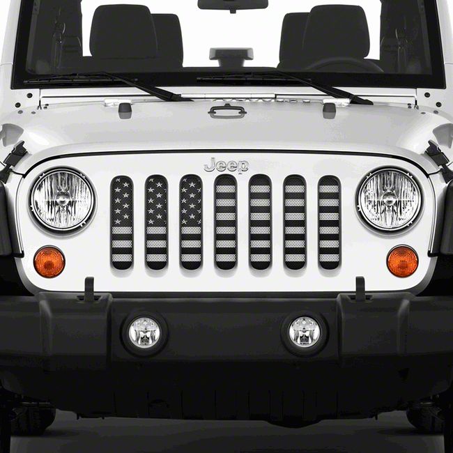 Improve your Jeep’s Exterior Styling. Are you in the market for a sleek, easy-to-install accent piece to spruce up your Jeep’s aesthetic? This Grille Insert is a premium addition to any Wrangler, installed behind the factory grille for a subtle yet attractive accent. In addition, this grille insert features a monochromatic black and white American flag decal, proudly showcasing your patriotism for the world to see.