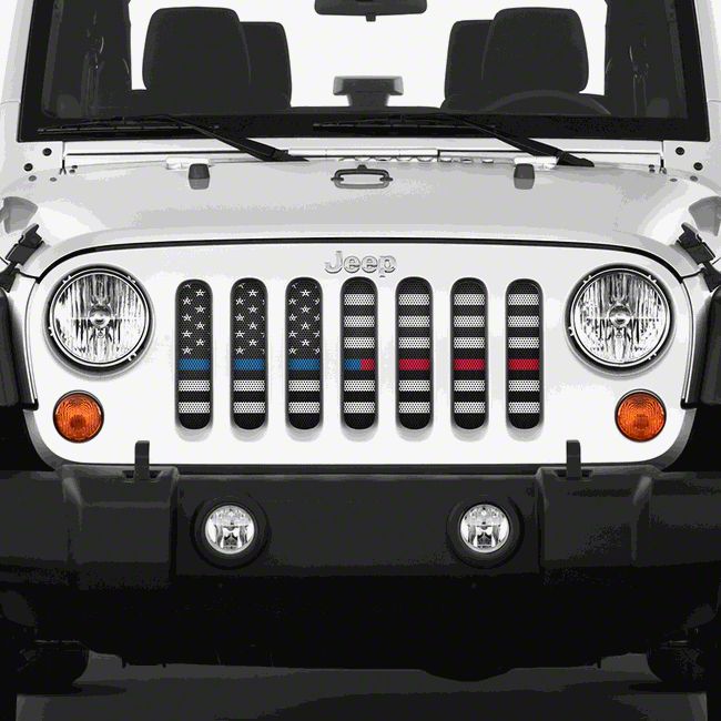 Let everyone know just how much you love and respect all the law enforcement and the fire department do for us citizens with this Back the Red/Back the Blue, American Black & White Grille Insert for Jeep Wrangler JK. Constructed from high quality, rust resistant aluminum, this grille insert is perforated to allow proper air flow to your engine. Combine that with the stylish design, and you've got a grille that's tough, functional, and gives your Jeep a unique look that will set you apart from the crowd!