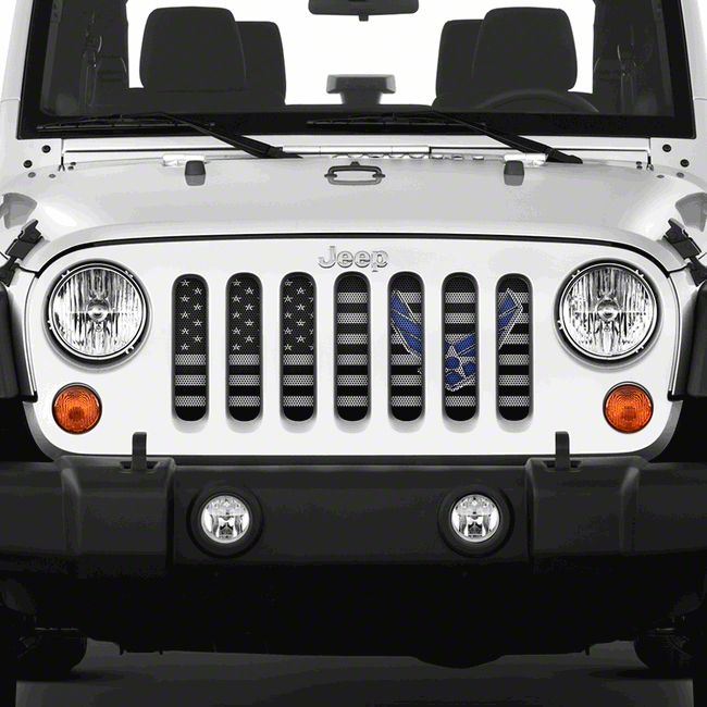 Air Force Styling. Do you want to show your appreciation for the armed forces? The Dirty Acres Fly High Air Force Grille Insert is the perfect accessory to do it. It comes with the Air Force emblem over an American flag backdrop and emphasizes the emblem using blue over black and gray colors. This combination is ideal for giving your Jeep a patriotic vibe while improving the radiator shielding.