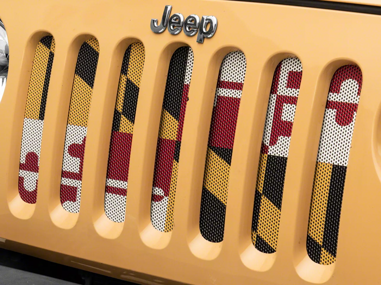 Show Your State Pride. With this Grille Insert, you can show your pride for Maryland while offering your vehicle’s front end some extra protection against trail debris. Fitting directly behind your stock grille, this tough insert deflects stones, sticks, and whatever else your wheels may churn up, ensuring no chance of anything getting into the engine bay. It’s perforated, which allows air to flow through the insert and into your engine bay.