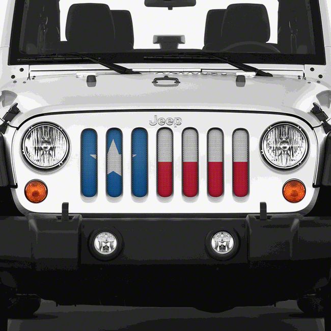 Add Some Texas Pride to Your Jeep Wrangler. Are you a Texas native or a proud resident? This Texas State Flag Grille Insert is the perfect way to show your Texas pride right on the front end of your Wrangler for everyone to see. This grille insert features a premium construction, simple no-drill install, and a premium powder-coated Texas state flag print.Â