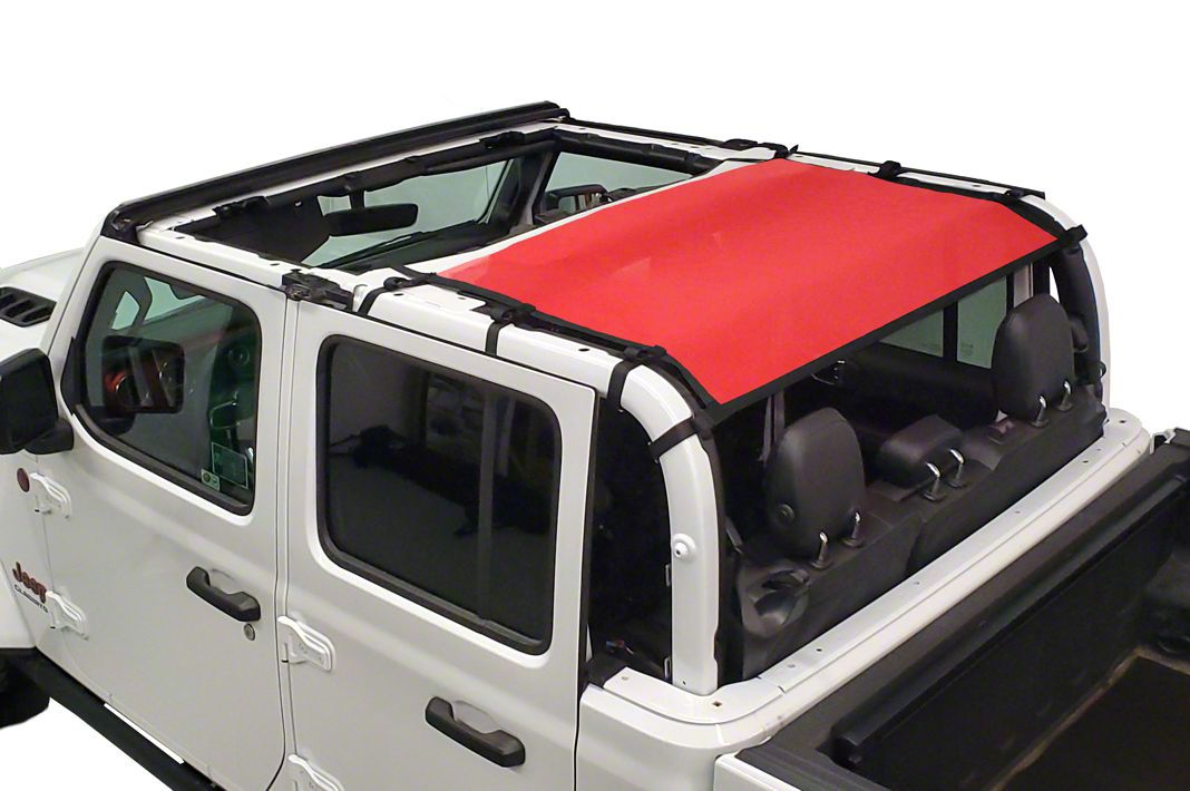 Impressive Off-Road Protection. Make your Jeep Gladiator look even more impressive with this Red Dirty Dog 4x4 Rear Sun Screen. Designed to be set up on hard or soft top Gladiators, this sun screen provides excellent protection to rear passengers against the elements. This lets you drive anywhere with the top of your vehicle off while enjoying some shade against the sun. And with its stunning look, this sun screen is set to make your Jeep look cooler in every sense of the word.