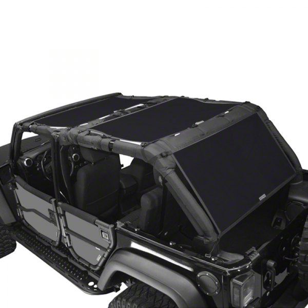 Shield Yourself and Passengers. If you are tired of the sun beating down on you and your passengers, but you want to be able to enjoy your Jeep in an open-air state, choose the Dirty Dog 4x4 Front, Rear & Back Sun Screen. This product is made for your 2007-2018 JK 4-Door model and will provide you and your rear passengers with the sun shield they need. This product blocks out 70 percent of the sun’s UV rays, but it allows you to see outside and enjoy the fresh air at the same time. The Dirty Dog 4x4 Front, Rear & Back Sun Screen ensures your Jeep maintains a factory, yet rugged look.