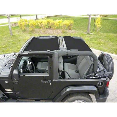 Block Out the Sun. When you want to protect yourself and your rear passengers from the sun above, choose the Dirty Dog 4x4 Front and Rear Sun Screen. This kit comes with a front sun screen and a rear sun screen to ensure that everyone can enjoy the fresh air outside without a sunburn to follow. The mesh allows for UV filtration and is available in assorted colors for your Jeep Wrangler. You can retain the rugged look of your Jeep with this sun screen installed.