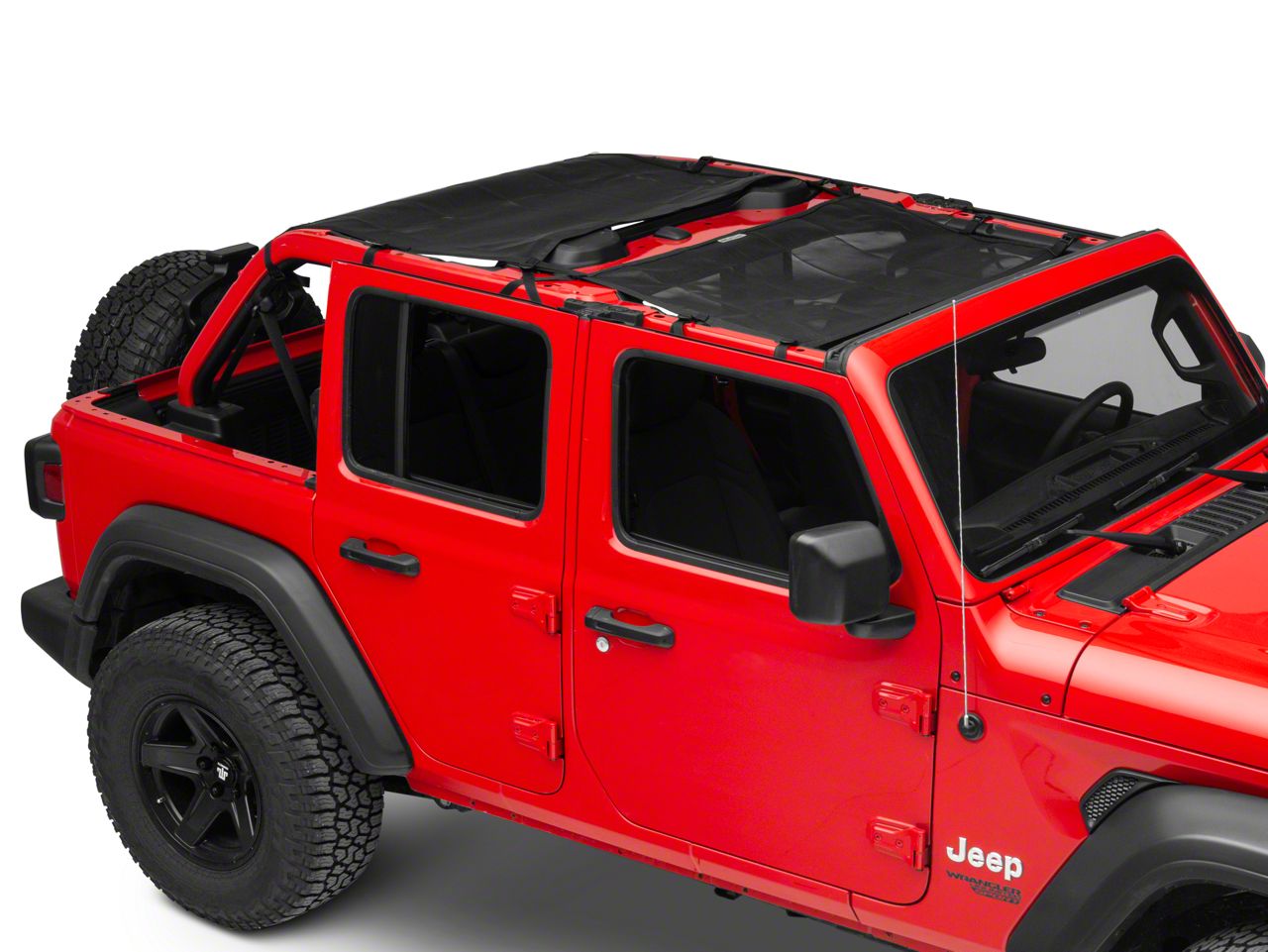 Application. These Dirty Dog 4x4 front and rear sun screens are designed to fit 2018-2023 Jeep Wrangler JL 4 Door models. Available in assorted colors.