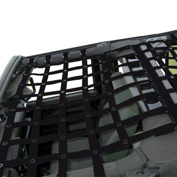 Keep Gear in Place. Challenging trails have a tendency to bounce you and your gear right out of your Jeep, that's why you should invest in a Dirty Dog 4x4 Front Seat Over Head Netting Kit. A Dirty Dog 4x4 Netting Kit is a great way to ensure that all of your gear and cargo remains safely in place and not scattered all along the trail.