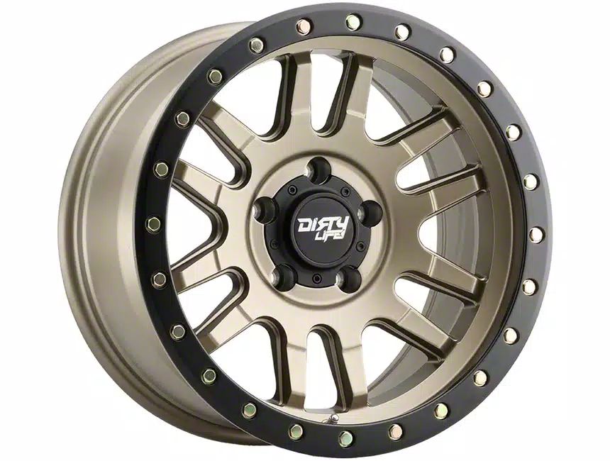 The 17x9 Dirty Life Canyon Pro Satin Gold 5-Lug Wheel underwent a thorough finishing process with certain coatings providing added protection against environmental elements and daily wear. Aesthetically, this finish significantly enhances the wheel's appearance, making it a standout feature.