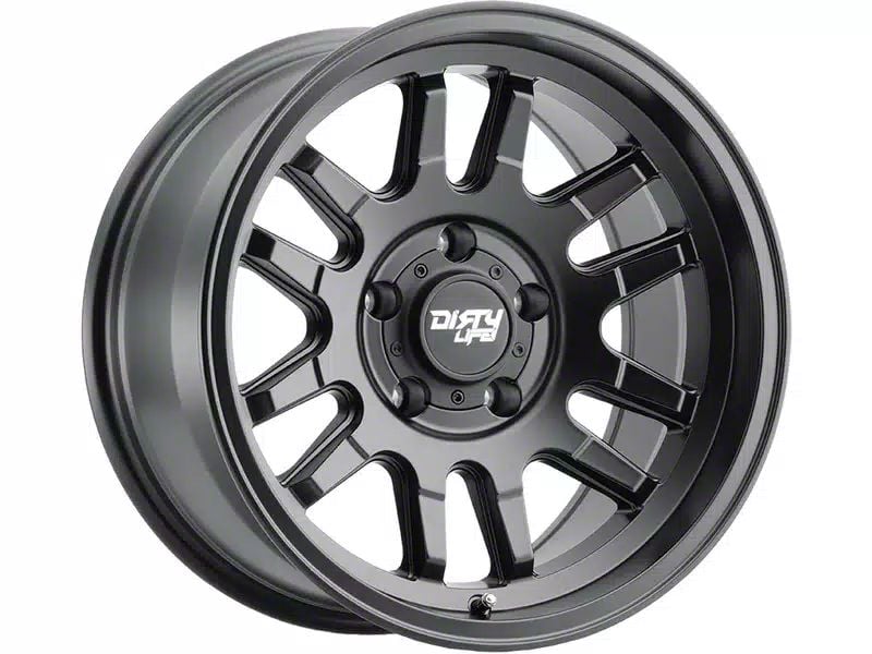 This 17x9 Dirty Life Canyon Matte Black 6-Lug Wheel is completed in a high-quality matte black finish that will be the envy of everyone. There's a durable clear coat that protects against driving hazards.