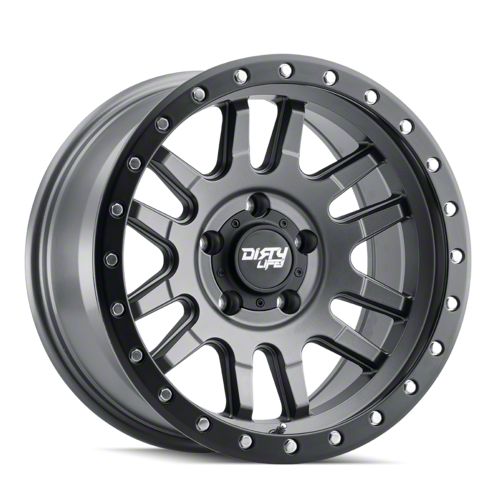Dirty Life Canyon Pro Satin Graphite 6-Lug Wheel; 17x9; 0mm Offset delivers a bold and modern aesthetic, ideal for enthusiasts seeking a refined yet assertive look for their vehicle. With its standout design and distinct finish, this wheel enhances the vehicle's visual stance and street presence. The precise craftsmanship and premium aluminum build reflect Dirty Life's dedication to quality and distinctive design. Whether parked or in motion, this wheel draws attention with its clean, aggressive styling.