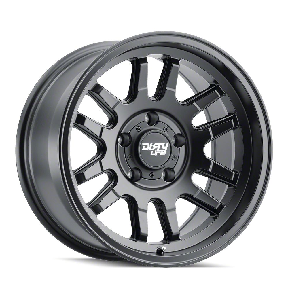 This 17x9 Dirty Life Canyon Matte Black Wheel is completed in a high-quality matte black finish that will make everyone notice. For added protection and good looks, there is a durable clear coat that withstands the rigors of daily driving.
