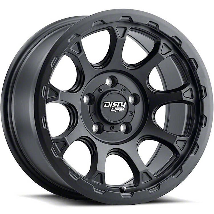 The 17x8.5 Dirty Life Drifter Matte Black Wheel is completed in a high-quality matte black finish for an aggressive appearance that will make others green with envy. For added protection and good looks, a clear coat is added.