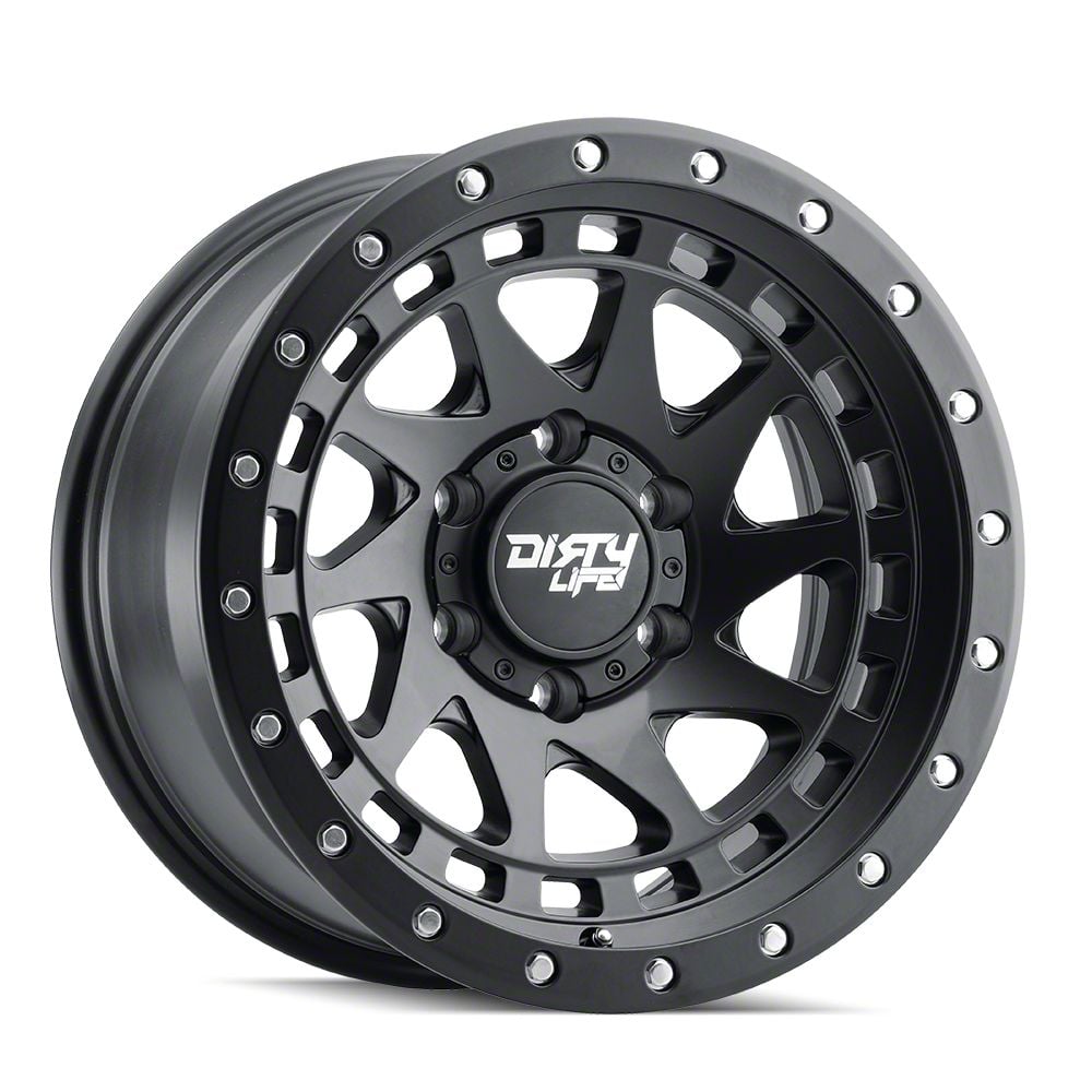 The 17x9 Dirty Life Enigma Pro Matte Black Wheel is completed in a high-quality matte black finish that will be the envy of everyone. For added protection and good looks, there is a durable clear coat that withstands the rigors of everyday driving,