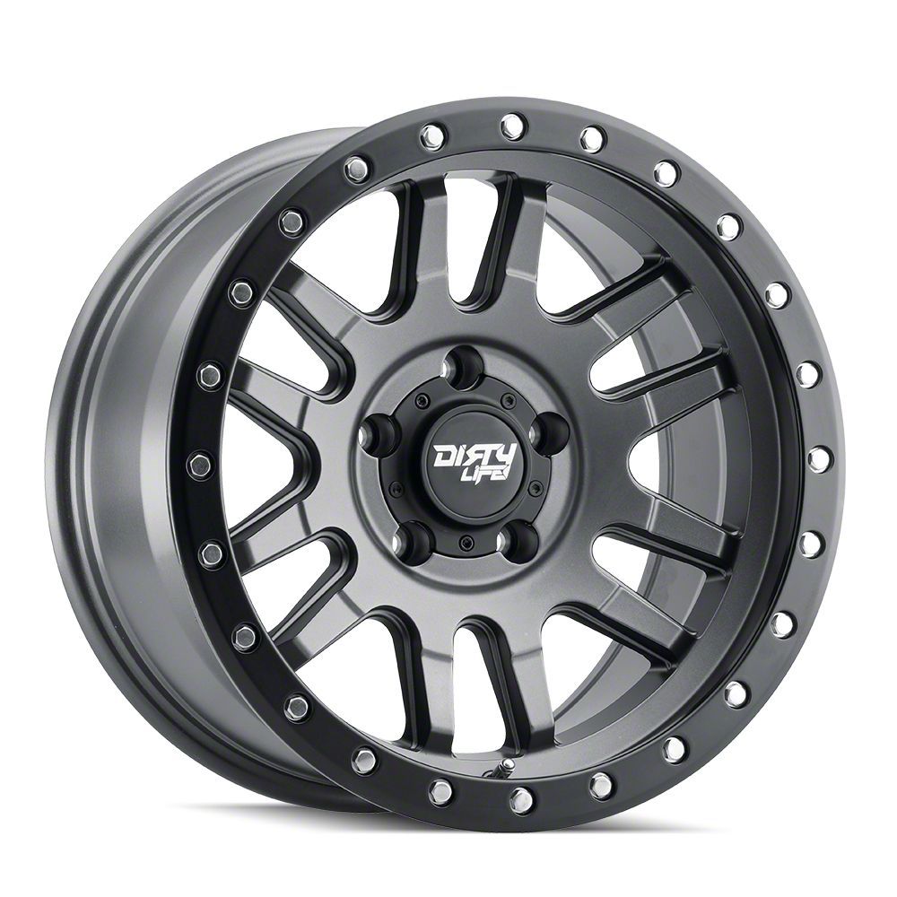 The 17x9 Dirty Life Canyon Pro Satin Graphite Wheel is completed in a high-quality graphite finish that will be the envy of everyone. For added protection and good looks, there is a durable clear coat that handles the rigors of daily driving.