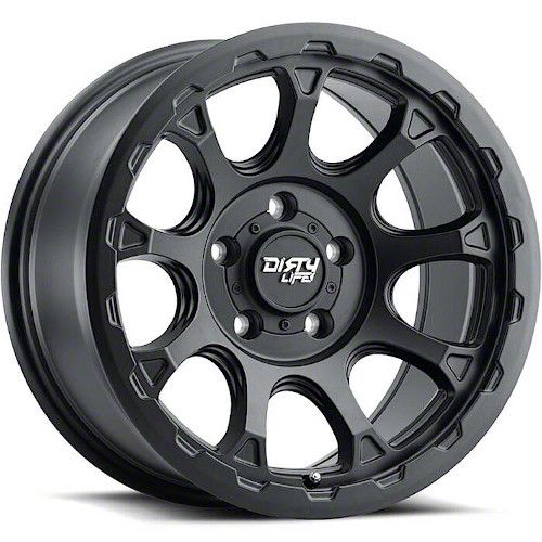 The 17x8.5 Dirty Life Drifter Matte Black 6-Lug Wheel is completed in a high-quality matte black finish for an aggressive appearance that will make others green with envy. For added protection and good looks, a clear coat is added.