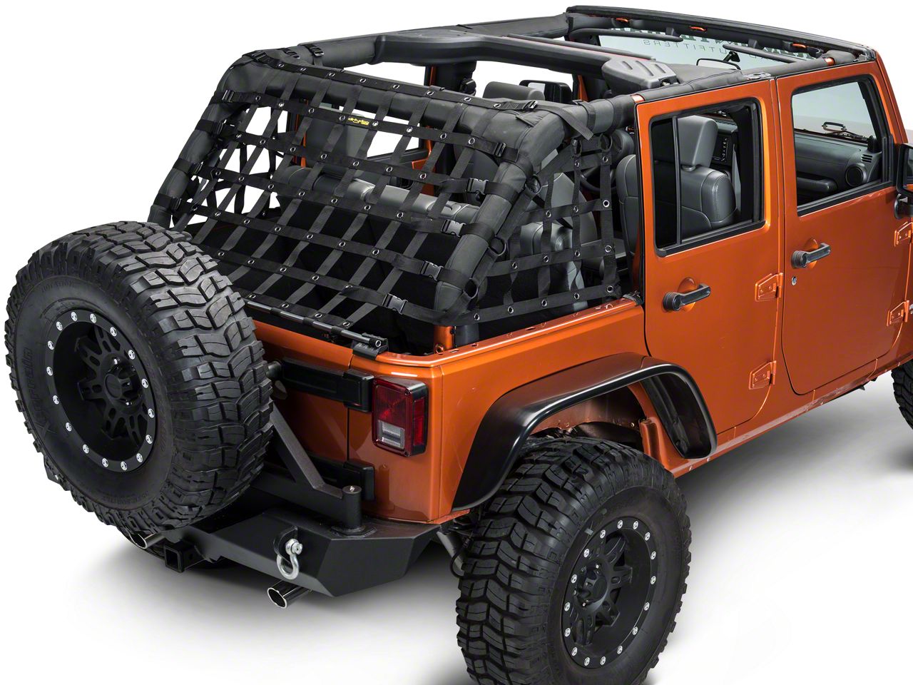 ExtremeTerrain no longer carries the Dirty Dog 4x4 3-Piece Rear Netting Kit; Black (07-18 Jeep Wrangler JK 4 Door). Please check out Jeep CJ7 Tops for 1976-1986 Wrangler for an updated selection.