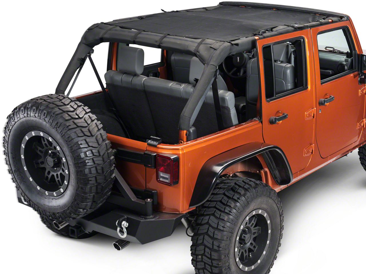 Construction. Dirty Dog 4x4's one piece sun screen fits all Jeep Wrangler JK 4-doors starting with 2007 until the present, and is made from the high quality, durable materials Jeep owners expect from this industry leading company. For a perfect balance between blocking out what you don't want and letting in the cool breezes you do want, this product is key.