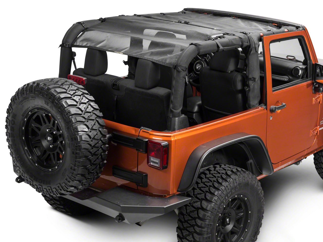 Application. This screen fits over the factory mounted hardware and is simple to install. It's also simple to remove, which means you can quickly and easily take it off when you don't need it. It fits 2007-2018 JK 2-door Wranglers.