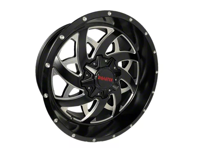 Disaster Offroad D94 Gloss Black Milled 6-Lug Wheel; 20x10; -12mm Offset. The Disaster Offroad D94 Gloss Black Milled 6-Lug Wheel; 20x10; -12mm Offset features a sleek and modern design that enhances the overall aesthetic of any vehicle. Its brushed gunmetal finish adds a touch of sophistication and complements various vehicle styles. This wheel's premium construction ensures durability and a robust appearance.