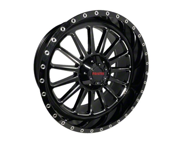 The 20x10 Disaster Offroad D96 Gloss Black Milled 6-Lug Wheel; 20x10; -12mm Offset is completed in a high-quality gloss black finish with milled accents that will make others green with envy. For added protection and good looks, this wheel features a durable clear coat that can withstand the hazards of daily driving.