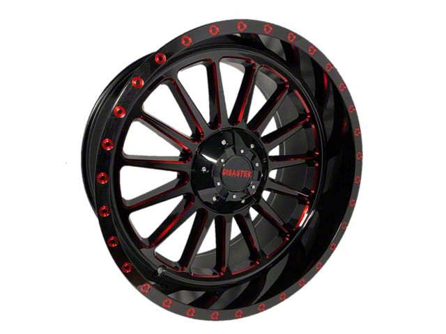 Disaster Offroad D96 Gloss Black with Candy Red Milled 6-Lug Wheel; 20x10; -12mm Offset: Redefine your vehicle's style with the Disaster Offroad D96 Gloss Black with Candy Red Milled 6-Lug Wheel. This wheel's elegant design and striking finish embody a blend of sophistication and boldness, perfectly complementing a wide array of vehicle aesthetics. Crafted from high-quality materials, it's a testament to durability and style.