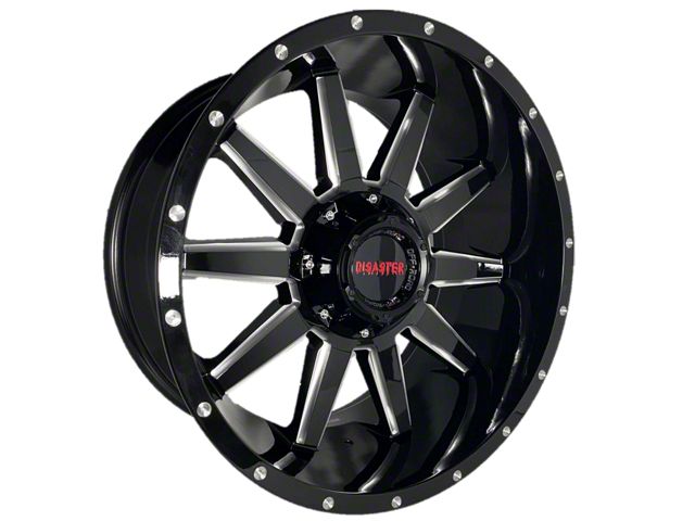 The 20x10 Disaster Offroad D04 Gloss Black Milled 6-Lug Wheel is completed in a high-quality gloss black finish, with steel milled accents. Thanks to a durable clear coat, the finish looks amazing and also protects against the rigors of driving.