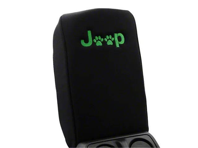 Stylish Console Protection. The Distinction Applied Center Console Cover with Jeep Paw Print Logo adds comfort, style, and protection to your 2018-2025 Jeep Wrangler JL. Featuring an embroidered paw print logo, this cover not only protects your console from wear, scratches, and UV damage but also provides a personalized touch with customizable thread color. Perfect for Jeep enthusiasts, it combines functionality with unique styling.