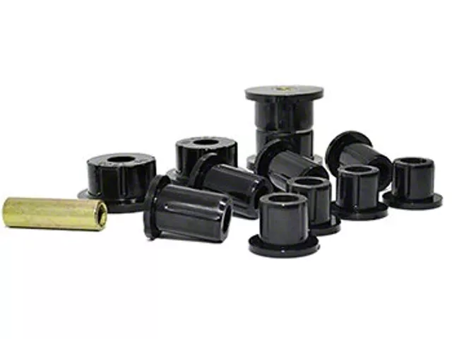Installation Note. When replacing the bushings where the shackle bolts to the frame, the outer metal sleeves of the stock bushings must be removed completely for the leaf spring bush to fit inside the shackle properly.