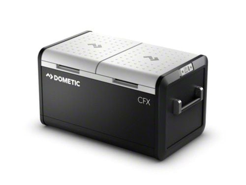 Description. This powerful mains-operated cooler offers even more space so that you can take all your favorite foods and drinks with you on every adventure. Its robust construction makes it ideal for outdoor use. With an app for mobile devices, you can control the functions of the Dometic CFX3 easily and conveniently. The two-zone storage compartments have independent temperature control to give you flexibility in their use.