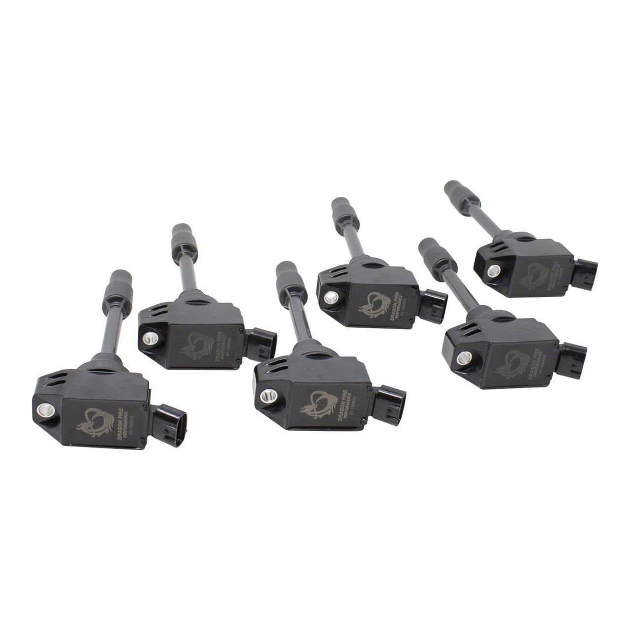 Power and Reliability. Boost your vehicle's performance to new heights with the Dragon Fire Performance Ignition Coil Packs. Designed meticulously to blend power, precision, and durability, these black coil packs stand as a testament to automotive excellence. Set your engine ablaze with up to 15% more energy, pushing your ride beyond its limits while ensuring compatibility and surpassing the original equipment's output voltage.