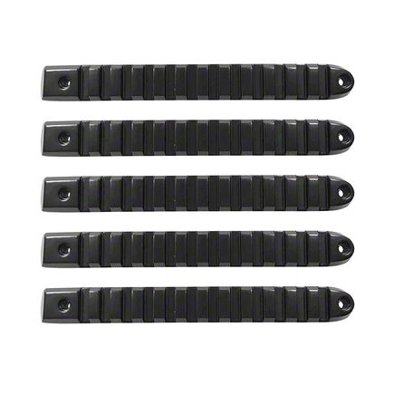 Upgrade Doors and Tailgate with Rail-Inspired Design. Enhance the look of your Jeep Wrangler JK 4-door with the DV8 Rail Style Door Handle Inserts - Black. The 5 inserts - 2 on the front door handles, 2 on the rear ones, and a fifth that goes on the tailgate - each have alternating vertical ridges and grooves with a black finish to beautify your off-road machine.