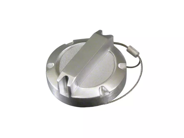 Design. This Jeep Wrangler accessory is CNC machined from 6061-T6 billet aluminum for strength. It has a brushed, textured surface with a clear anodized finish. This cap includes an integrated metal security cable that helps keep the cap and cork seal in place.