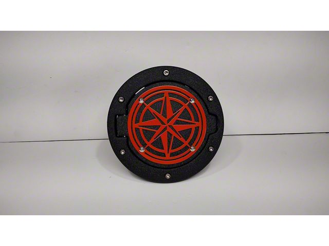 Description. Give your Jeep both a complete and custom look as well as additional durability for off-road action with Drop Zone Off Road's Fuel Door Assembly and Custom Compass Cover Plate for Jeep Wrangler JK and TJ. Fits on all 4-door and 2-door models. The sturdy fuel door is made from die-cast aluminum alloy and is powder coated with American-made color of your choice! The custom image cover is made from American Steel, also powder coated with the finish color of your choice. 50+ colors available including *closest Jeep factory match.