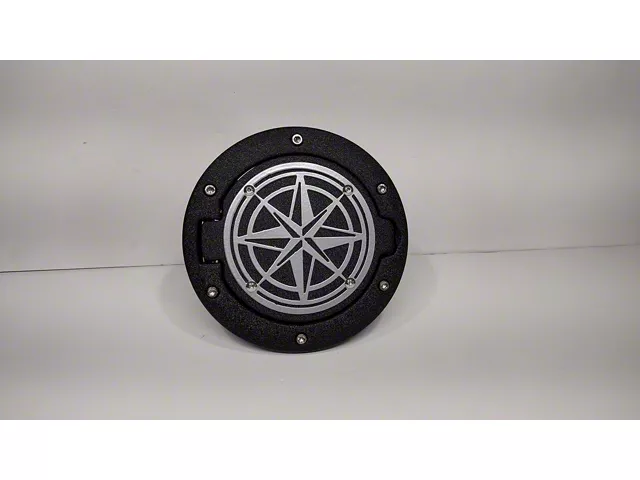 Description. Give your Jeep both a complete and custom look as well as additional durability for off-road action with Drop Zone Off Road's Fuel Door Assembly and Custom Compass Cover Plate for Jeep Wrangler JK and TJ. Fits on all 4-door and 2-door models. The sturdy fuel door is made from die-cast aluminum alloy and is powder coated with American-made color of your choice! The custom image cover is made from American Steel, also powder coated with the finish color of your choice. 50+ colors available including *closest Jeep factory match.