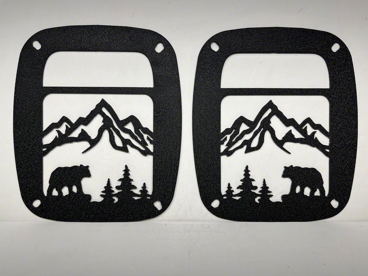 Arts and Function. Make sure your valuable tail lights are protected with the Drop Zone Off Road Tail Light Guards (Bear Mountain Scene). This pair of tail light guards cover and protect your tail lights against minor impact and road debris. They come with an artistic bear mountain scene design that will make you want to go on another mountain adventure.