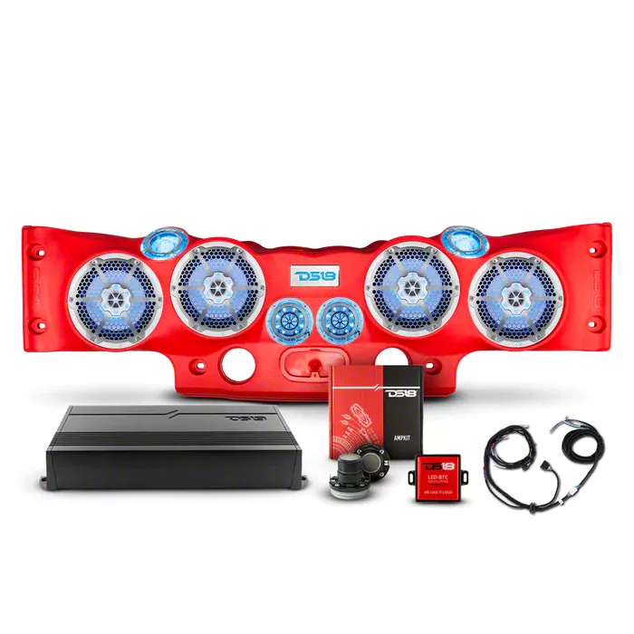 Dynamic Marine-Grade Sound Solution. The DS18 Complete RGB Loaded Sound Bar Package with Metal Grille Marine Speakers combines high-performance audio with aesthetic LED lighting. This package is designed for Jeep Wrangler JK models and delivers superior sound clarity, making it ideal for marine and off-road use.