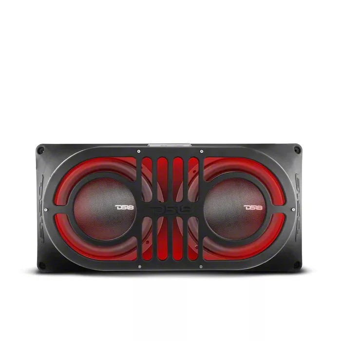 Construction and Appearance. Built with durability in mind, the JBass Platinum Subwoofer Package features a sleek matte black finish and dark red LED lights for an eye-catching appearance. The components are crafted from high-density ABS plastic, ensuring the package is both UV-protected and all-weather resistant, making it ideal for off-road or outdoor use.