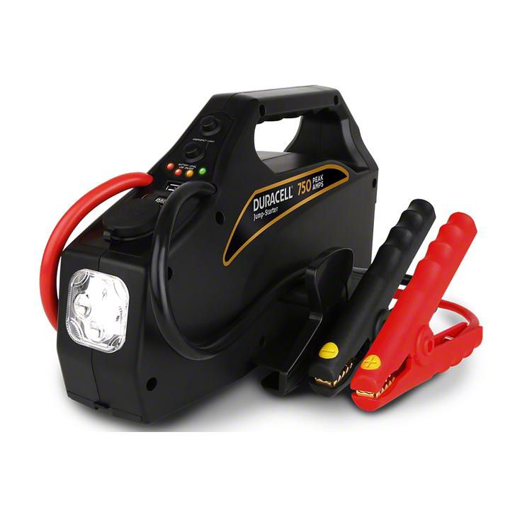 750 Peak Amp Output. Never get stranded with Duracell's Portable Emergency Jump Starter. This Jump Starter delivers up to 750 Amp of peak power thanks to its internal rechargeable 9 Ah battery. The LED fuel gauge/battery level indicator conveniently shows the battery fuel level, so you always know when you need to re-charge. You can re-charge with the included AC battery charger. Included are built-in color-coded copper-clad 6 AWG jumper cables. RED: positive jump starting clamp that connects to the positive terminal. BLACK: negative jump starting clamp that connects to the engine block.