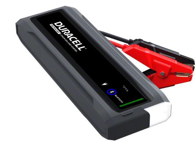 1800 Peak Amp Output. Never get stranded with the Duracell Portable 1800 Bluetooth enabled Lithium-Ion Jump Starter with USB Power Bank and Flashlight. With 1800 Peak Amps, this Jump Starter is powerful enough to start 4, 6 and 8 cylinder gasoline engines with up to 6 liters of displacement and up to 3 liters on diesel engines (up to 50 jump starts a single charge). Duracell's exclusive SafeJump Technology features the most advanced safety system on the market. Unlike conventional jump-starters, the safety system is internally mounted which enables it to monitor critical components of the jump-starter. SafeJump technology ensures spark-proof operation and protects against reverse polarity, reverse current, over temperature and low voltage.