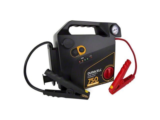 750 Peak Amp Output. Never get stranded with Duracell's Portable Emergency Jump Starter. This Jump Starter delivers up to 750 Amp of peak power thanks to its internal rechargeable 9 Ah battery. The LED fuel gauge/battery level indicator conveniently shows the battery fuel level, so you always know when you need to re-charge. You can re-charge with the included AC battery charger. Included are built-in color-coded copper-clad 6 AWG jumper cables. RED: positive jump starting clamp that connects to the positive terminal. BLACK: negative jump starting clamp that connects to the engine block.