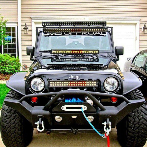Recovery Bumper. This bumper is designed to be equipped on a Jeep that's ready to help it's friends out. With solid D-ring mounts, light tabs, the ability to mount the factory fog lights, and a winch plate included, you'll be ready to go at a moment's notice.