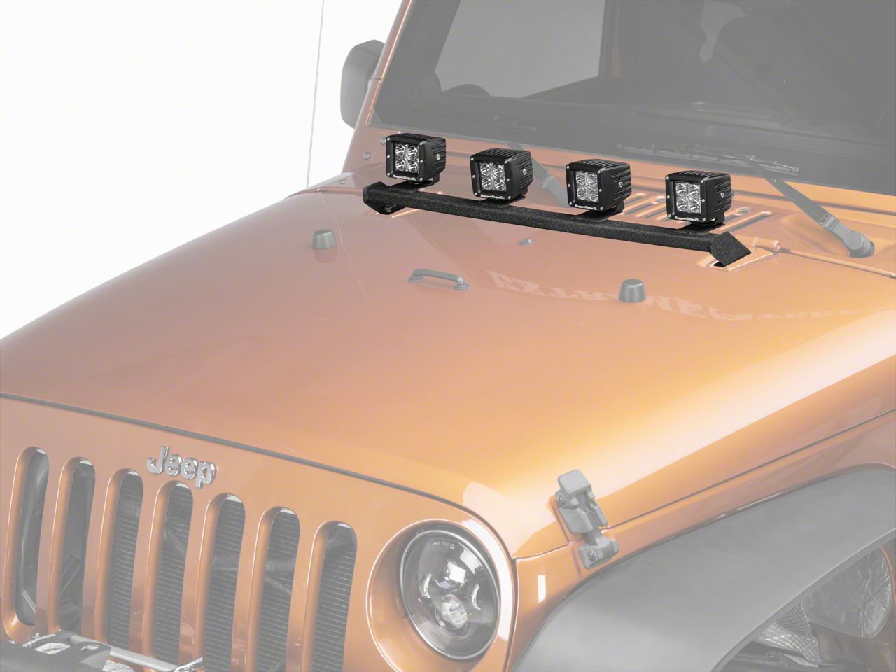 Low-Profile Design. If you like to keep your lights low, then the DV8 Offroad Hood Light Bar Mounting Bracket is for you. With this pair of brackets, you can mount two individual lights or a 30” or wider light bar on the hood of your Wrangler. These brackets mount directly behind your hood’s hinges.