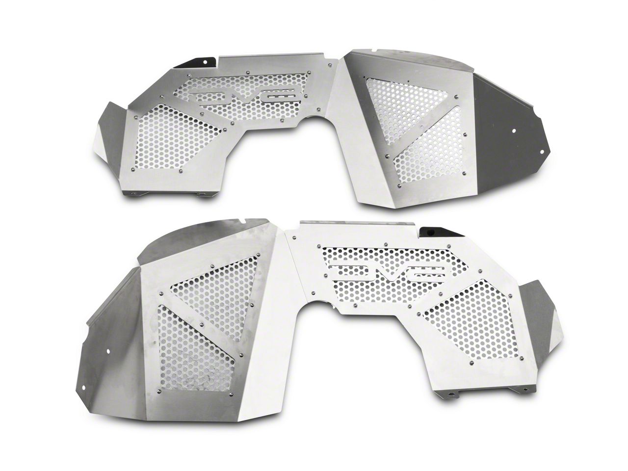 Durable Construction, Elegant Finish. The DV8 Offroad Front Aluminum Inner Fenders are made from high-quality aluminum. This keeps the inner fenders lightweight, but still maintains their strength and durability. Each fender features a raw aluminum finish that gives it a sleek and elegant look.