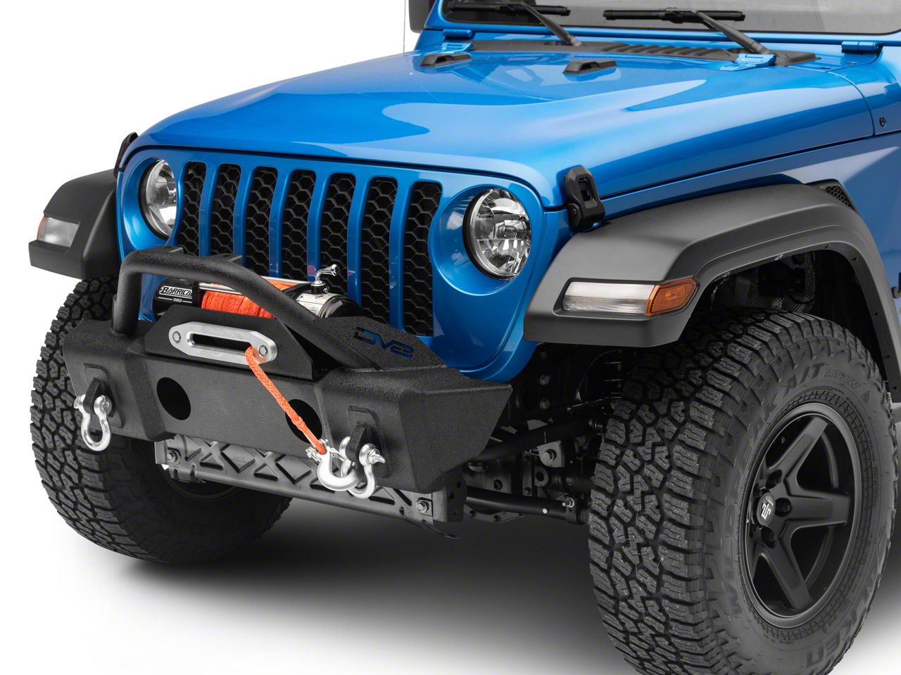 Heightened Profile. If you've been looking for a front bumper with a high profile, then the DV8 Offroad FS-13 Hammer Forged Stubby Front Bumper with Fog Light Provisions is ideal for your JT Jeep Gladiator. It is the highest profile bumper featured in the Hammer Forged line. Your Jeep will have superior protection with this stubby front bumper. Awesome approach angles, solid D-rings, a gusseted stinger, and .170 wall stinger are impressive features on this front bumper.