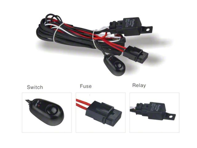 Necessary Components. This wiring harness isn’t just a simple set of wires. This kit also comes with a fuse, relay, and an on and off switch to ensure easy installation and simple addition to your vehicle’s electrical system.
