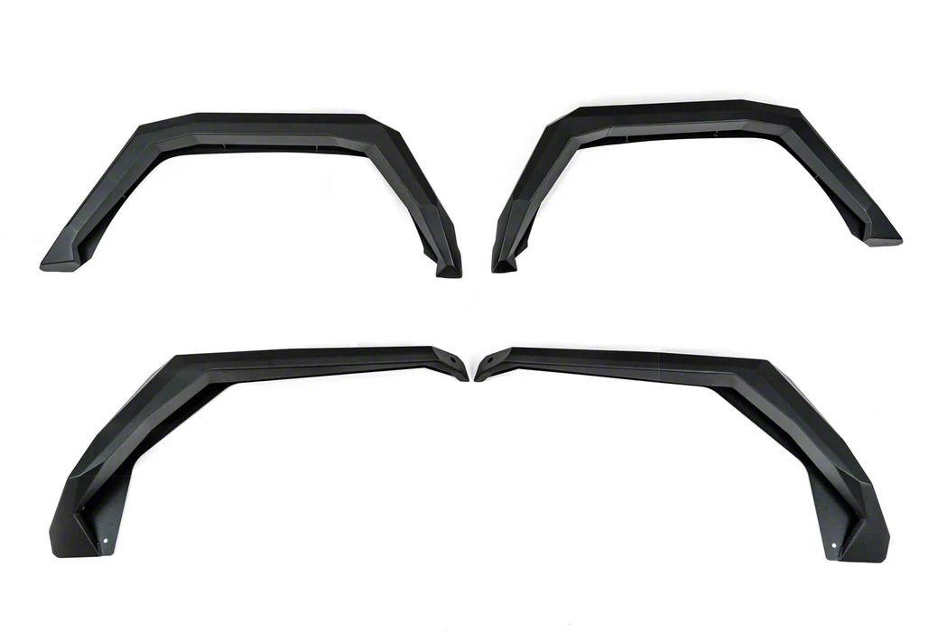 Heavy-Duty Fender Protection. The DV8 Offroad Armor Fender Flares are built to handle rugged conditions while enhancing style and utility. Designed with a rigid armor-plated structure, they help shield against mud, rocks, and debris encountered both on and off-road. These fender flares fit 2020-2026 Jeep Gladiator JT models, providing a direct replacement solution with upgraded durability and appearance.